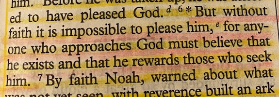 When I cracked open my Bible this morning to today’s first Scripture passage I saw that it began with the familiar, “Faith is the realization of what is hoped for, and evidence of things not seen.” (Heb 1:1, NAB).  I immediately sensed I should pay attention because something profound was yet to come.  Five verses later, there it was, “But without faith it is impossible to please Him [God], for anyone who approaches God must believe that He exists, and that He rewards those who seek Him.”   Those words evoked a beautiful memory of a life-changing event….