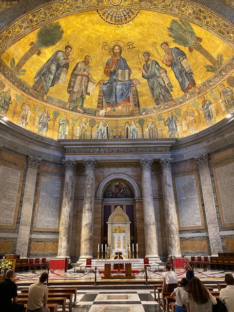This was my second pilgrimage to Rome, the first being in 2019. Of course, when you go to Rome, you have to visit the major cathedrals and basilicas in and around the Vatican. We visited St. Peter’s, St. Mary Major, St. John Lateran, and St. Paul Outside the Walls, all marvelous examples of renaissance architecture and elaborate baroque sculpture and art. It truly is beautiful beyond words! However, this year, it was astoundingly beautiful because it is a jubilee year and a boat load of money was spent cleaning and polishing everything. The skill of the artists, sculptors, and craftsmen, men like Michelangelo, Raphael, Bernini, and so many others, is purely mind blowing!